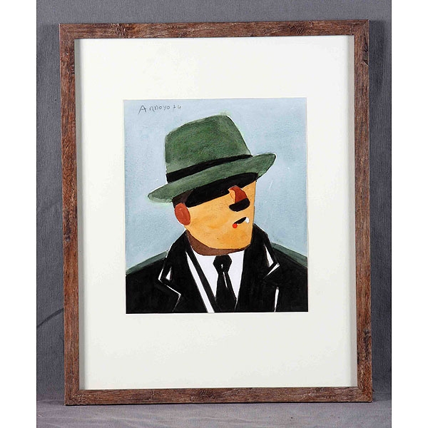 ARROYO, EDUARDO (1937-2018). “Figura con sombrero”. Acuarela, de 30x25,5 cm.