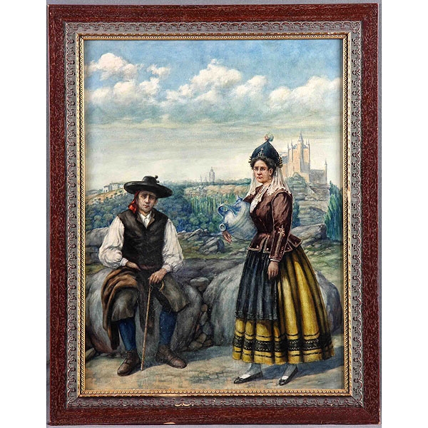 Segovianos con el Alcázar al fondo.