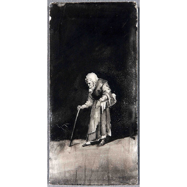 Técnica mixta sobre alabastro, de 18x8,5 cm. Firmada. Permiso de exportación concedido, pendiente de renovación.