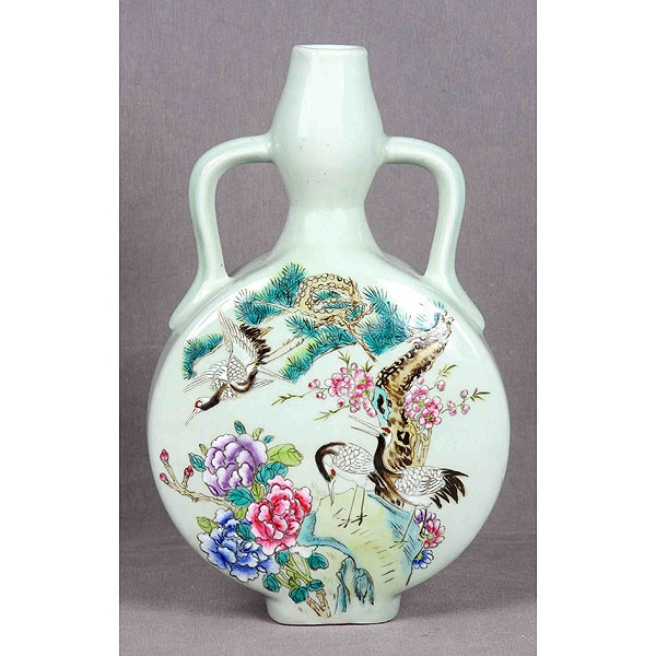 En cerámica vidriada decorada con escenas de aves y ramasy motivos florales. Sello en la base.