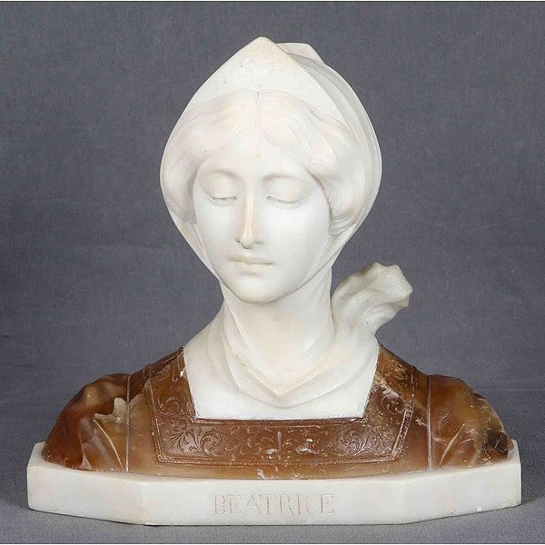 Busto francés en alabastro, en dos tonalidades, de época modernista 1900. Med.: 25,5x27x11 cm.
