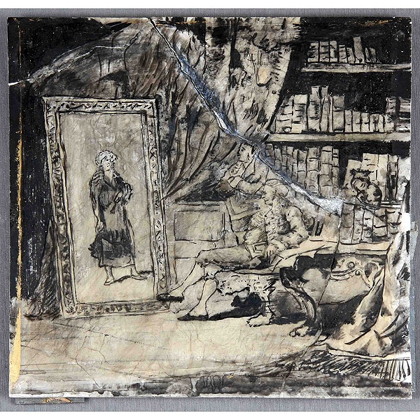 El estudio técnico demuestra que para la ejecución de la obra se ha partido de un dibujo previo realizado directamente sobre el soporte, que sirve de guía para la disposición de los distintos elementos, pero que, además, se incorpora convenientemente a los efectos de la pintura vista.