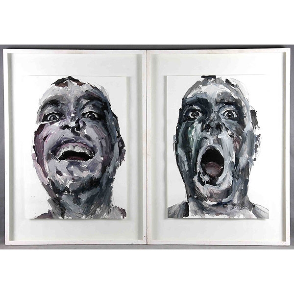 Pareja de acrílicos sobre papel, de 70x50 cm.