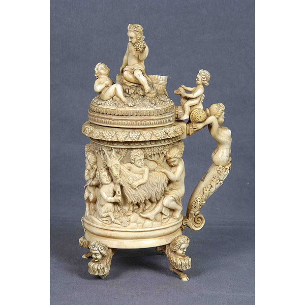 Tankard alemán, finales S.XIX, tallado en marfil.