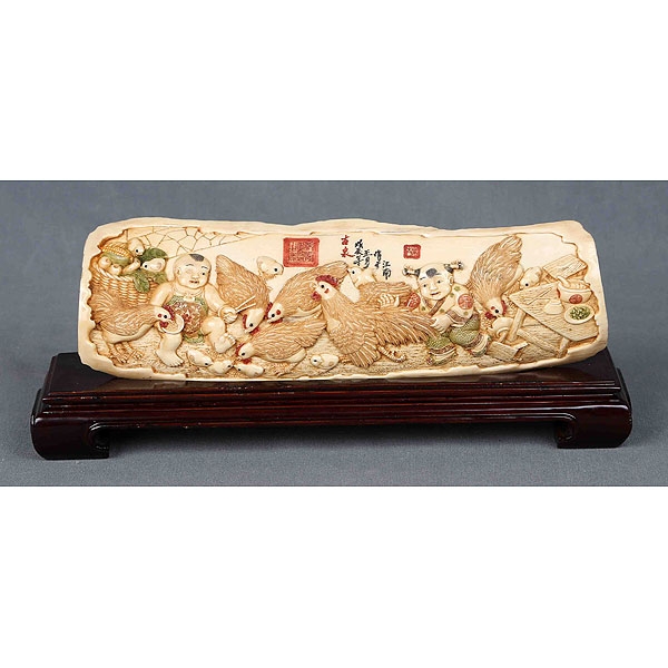 177 Publicado en GALILEO. Subasta 19 Septiembre 2019 tamaño de la fuente disminuir el tamaño de la fuente aumentar tamaño de la fuente Imprimir Compartir Talla japonesa.En marfil de mamut, decorada con figuras de niños y gallinas. Con grafías y sellos. Sobre peana de madera. Med.: 8x25 cm. Se acompaña de certificado. Información adicional Precio de salida: 700 € >>: PUJAR AQUÍ Tweet Etiquetado como MARFIL Valora este artículo 1 2 3 4 5 (0 votos)