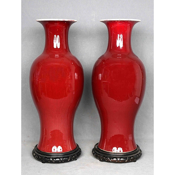 En porcelana SANG DE BOEUF, sobre bases de madera.