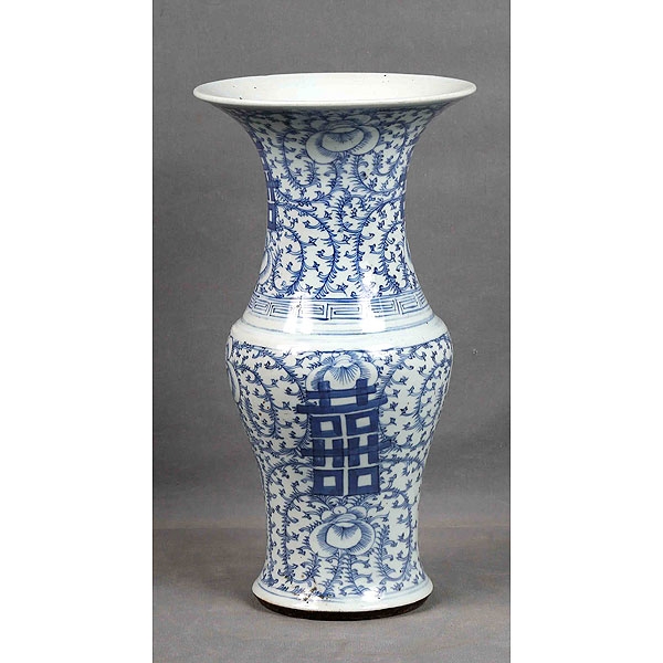 En porcelana esmaltada azul y blanca, con decoración de motivos vegetales.