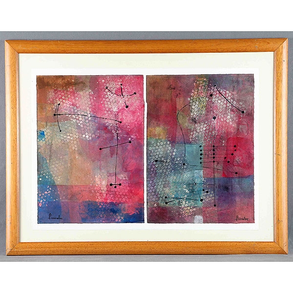 Pareja de técnicas mixtas sobre cartón, en un mismo marco, de 46x33 cm. c/u.