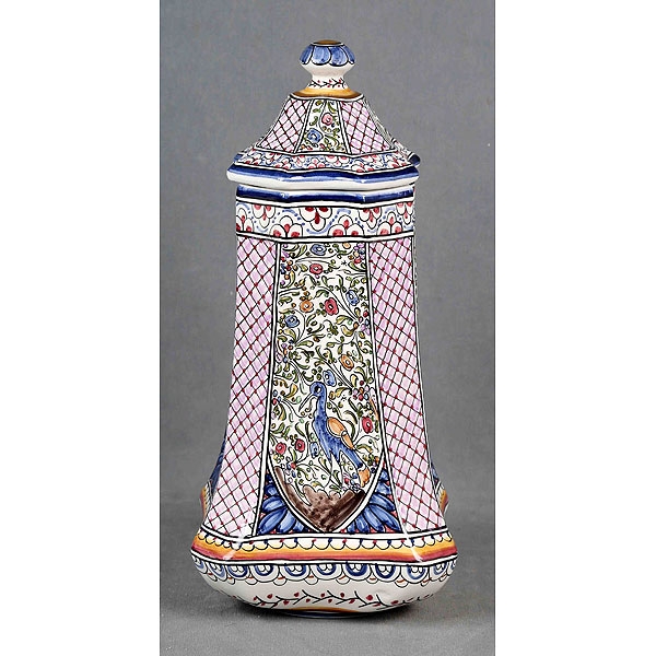 En porcelana COIMBRA, policromada y decorada con motivos animales, geométricos y florales.