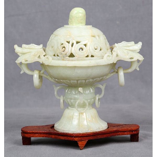 002 Publicado en GALILEO. Subasta 14 Abril 2020 tamaño de la fuente disminuir el tamaño de la fuente aumentar tamaño de la fuente Imprimir Compartir Incensario en jade Incensario.Tallado en jade, con decoración de cabezas de dragones con anillas, sobre peana de madera. Alt.: 16,5 cm. Información adicional Precio de salida: 200 € >>: PUJAR AQUÍ Tweet Etiquetado como ORIENTAL Valora este artículo 1 2 3 4 5 (0 votos)