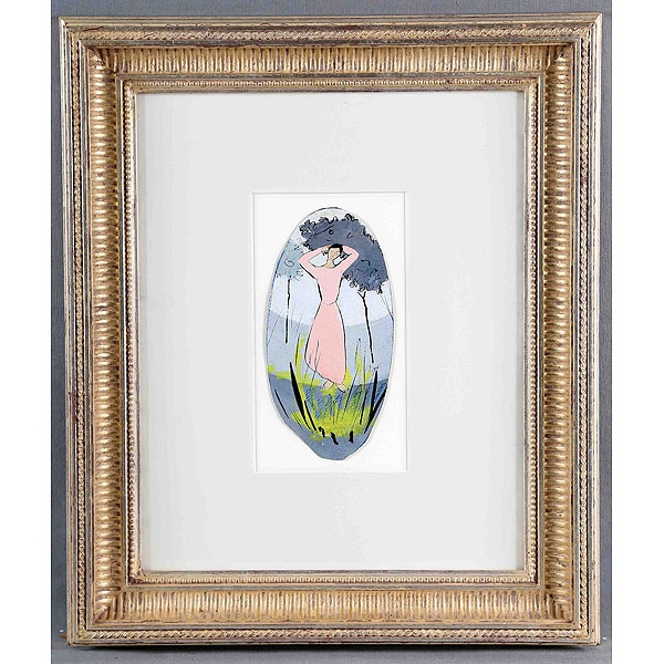 Técnica mixta sobre cartón, de 21x10 cm. Ovalado.