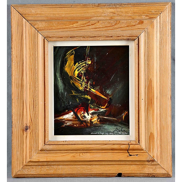 Óleo sobre tablex, de 25x20,5 cm. Firmado y dedicado.