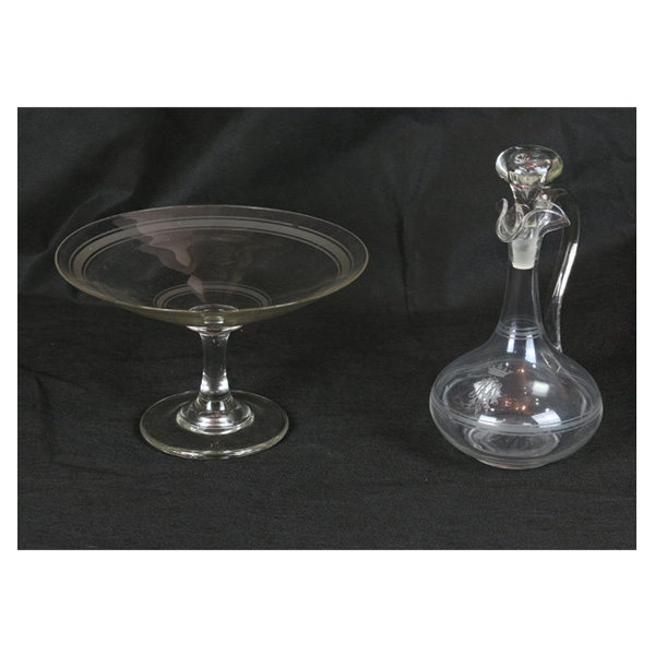 JARRA Y FRUTERO EN CRISTAL GRABADO