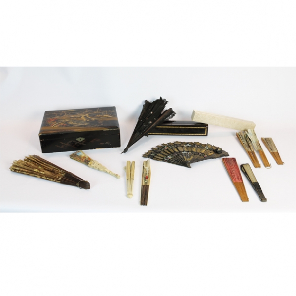 LOTE DE 11 ABANICOS PARA RESTAURAR CON CAJA ORIENTAL.