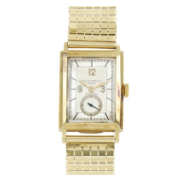 PATEK PHILIPPE. GONDOLO. RELOJ DE PULSERA DE CABALLERO AÑOS 50 Caja y armis en oro. Numeración arábiga, segundero a las seis. Movimiento a cuerda.