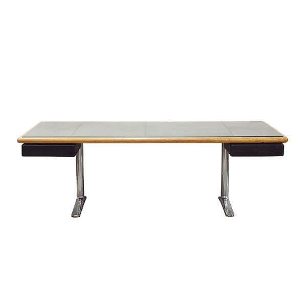 WARREN PLATNER (BALTIMORE, ESTADOS UNIDOS, 1919-NEW HAVEN, 2006). Mesa escritorio de oficina. Estructura en acero cromado y sobre en roble y cuero.