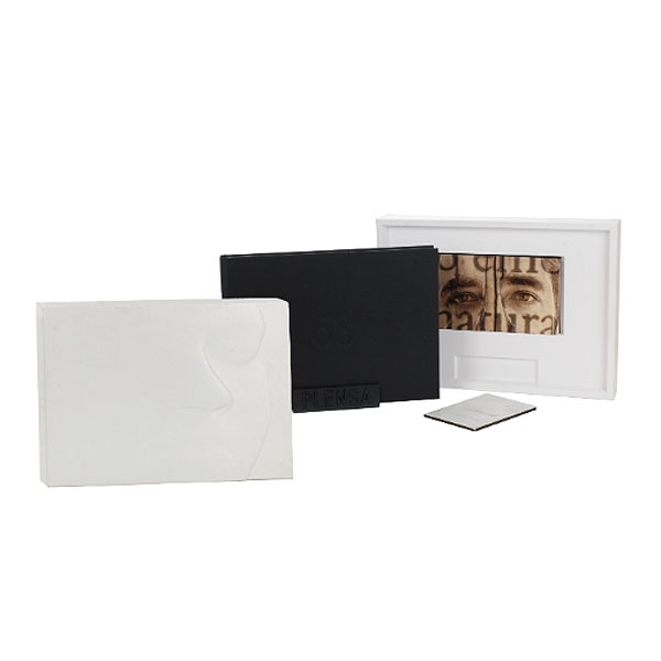 La pieza es, a su vez, un estuche de dos piezas que guarda un libro de arte, libro de estudio con textos de Rafael Argullol, CD explicativo y soporte para el libro de arte.