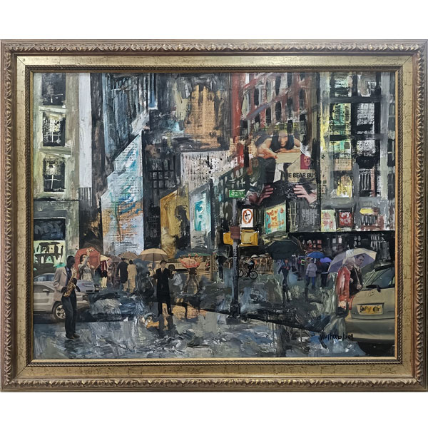 Antoni Vives Fierro (Barcelona, 1940). Título: Paraigües (2009). Descripción: óleo y collage sobre lienzo firmado y fechado 2009 en el ángulo inferior derecho.