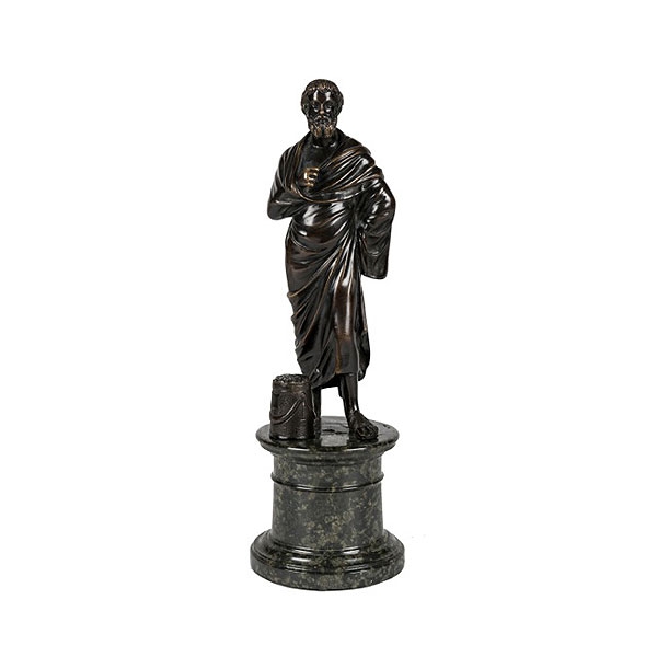 Senador romano de bronce patinado sobre base de mármol, trabajo italiano del S.XIX