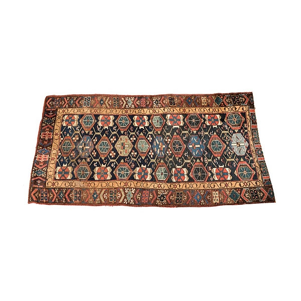 Alfombra de lana del Caucaso con decoración geométrica de hexágonos