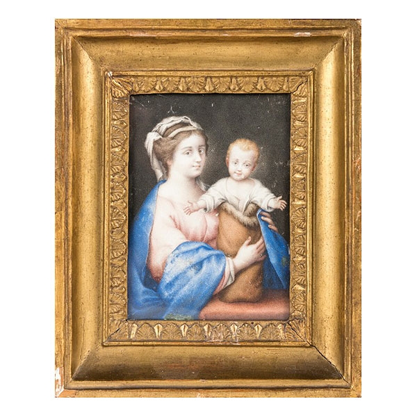 Miniatura sobre pergamino con La Virgen y el Niño, trabajo italiano del S.XVIII