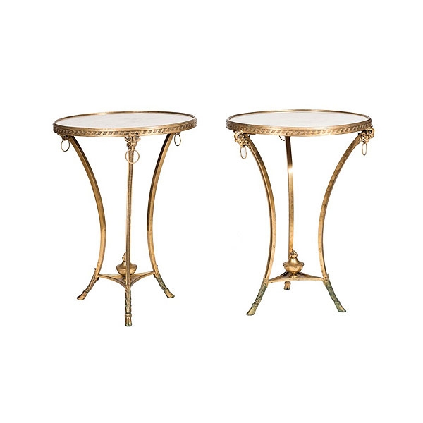 Pareja de veladores franceses de bronce con tapas de mármol estilo Luis XVI, S.XIX - XX. Patas monópodas con cabezas de carnero y pezuñas. 72 x 53 cm 3.500 - 3.800 €