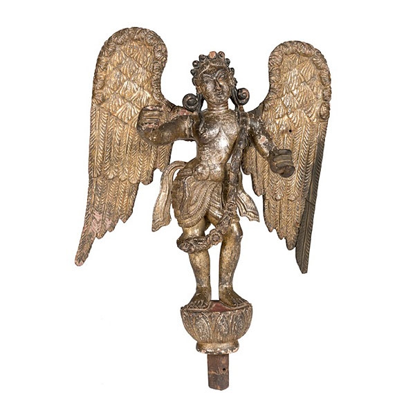 Talla de madera corlada y policromada representando a un angel tenante, India S.XIX