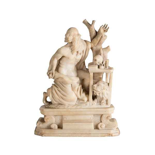San Jerónimo penitente de alabastro, trabajo aragonés del S.XVII. Mano restaurada