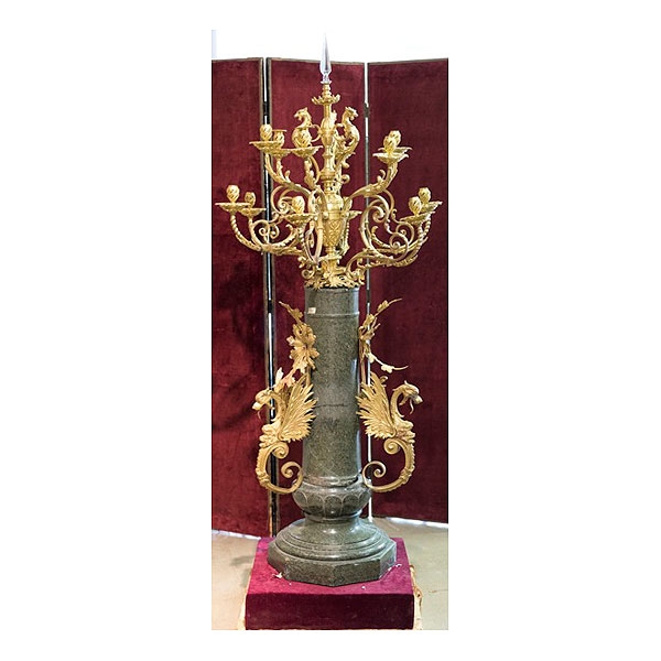 Gran "Girandole" de bronce dorado y mármol verde de los Urales, trabajo ruso de ffs.S.XIX. Faltas