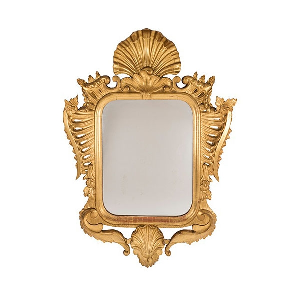 Gran espejo de madera tallada y dorada de estilo Barroco