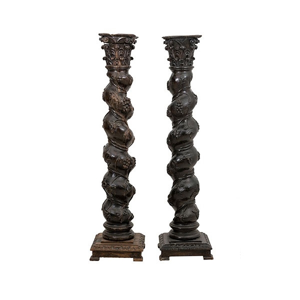 Pareja de columnas salomónicas de madera tallada en su color, S.XVII