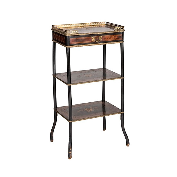 0396 Publicado en GOYA. Subasta On-line Enero 2018 tamaño de la fuente disminuir el tamaño de la fuente aumentar tamaño de la fuente Imprimir Compartir Mesita auxiliar francesa con dos bandejas, cajón, galería calada y decoración de marquetería, Napoleón III, S.XIX82 x 30 x 40 cm250 - 300 € Información adicional Precio de salida: 250€ >>: PUJAR AQUÍ Tweet Etiquetado como MUEBLES Valora este artículo 1 2 3 4 5 (0 votos)