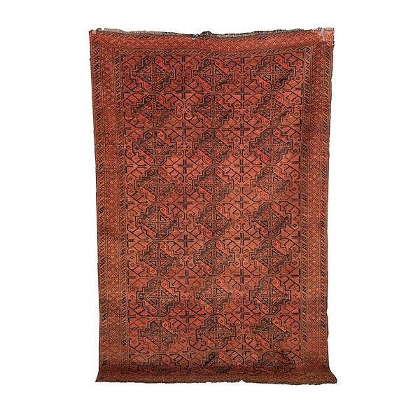 Alfombra turca Yamut de fondo color rojo con motivos en azul