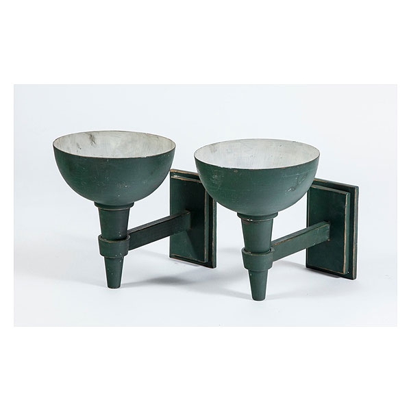 Pareja de apliques de hierro policromado en verde diseño de Marc du Plantier del Edificio Carrión, años 40