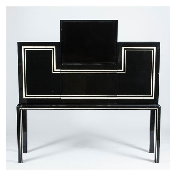 Mueble bar de madera lacada en negro con banda blanca simulando marfil, Maison Jansen años 70