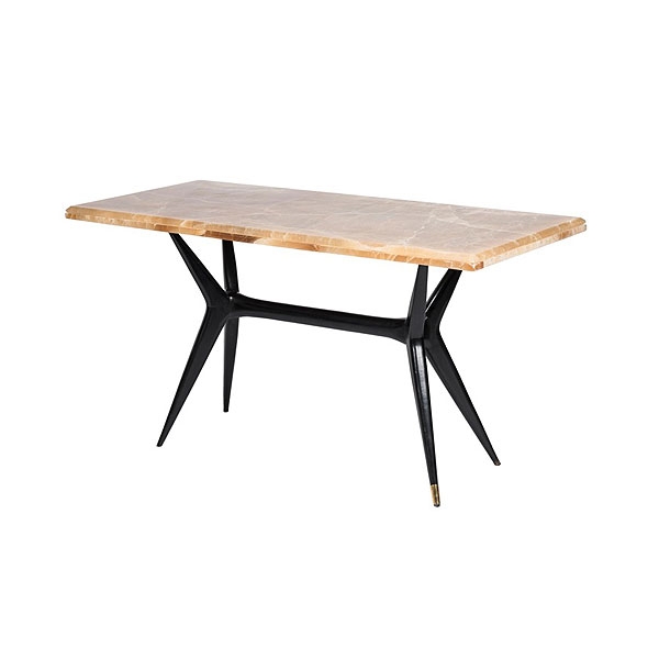 Mesa rectangular de onix con patas de madera ebonizada años 50