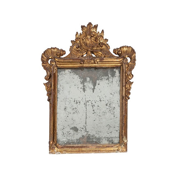 Espejo español de madera tallada y dorada, S.XVIII. Faltas. Mantiene la luna antigua