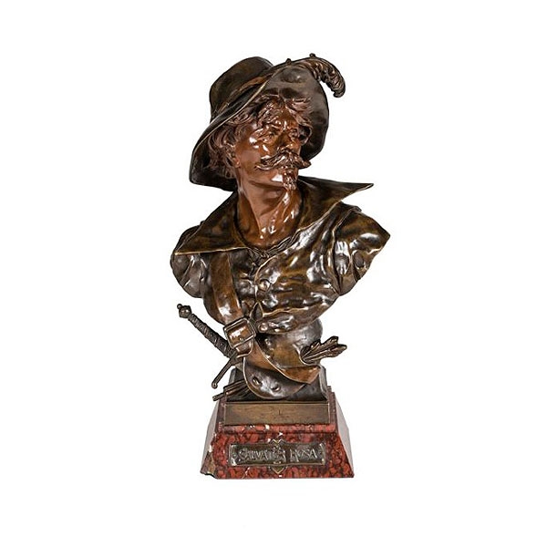 Emile Louise Picault (Francia 1833 - 1915) "Salvatore Rosa"1898, bronce patinado sobre base de mármol rojo. Firmado y titulado