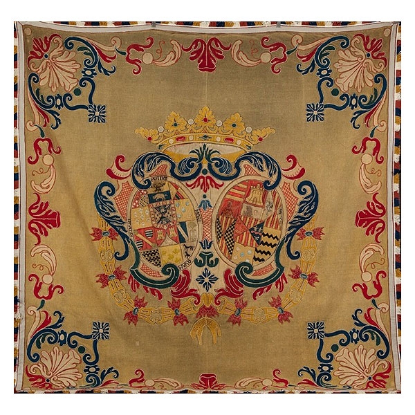 Repostero español de lana y algodón con escudo nobiliario S.XIX