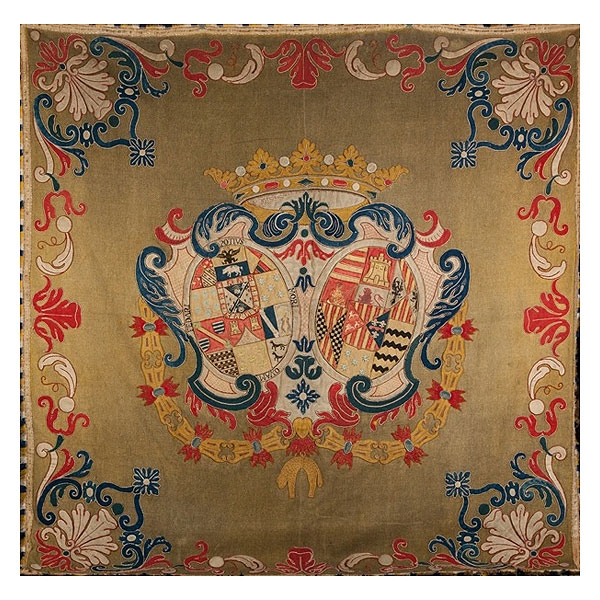 Repostero español de lana y algodón con escudo nobiliario S.XIX