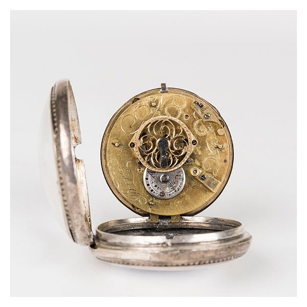 Reloj de bolsillo de plata con esfera de esmalte representando a un rey, Breguet, París, S.XIX