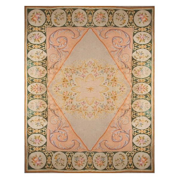 Alfombra de nudo turco con decoración estilo Carlos IV. Faltas