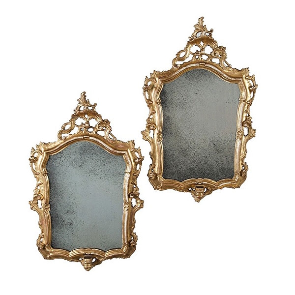 Pareja de cornucopias de madera tallada y dorada, trabajo italiano del S.XVIII