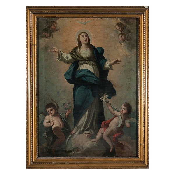 "Virgen Inmaculada rodeada de ángeles y querubines"
