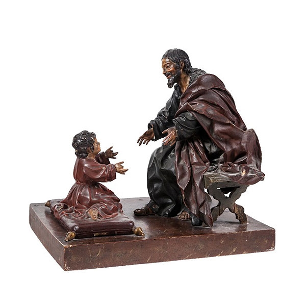 "San José con el Niño" talla de madera policromada, trabajo andaluz del S.XVIII
