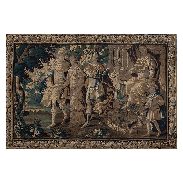 Tapiz de Bruselas de lana "Marco Antonio y Cleopatra se despiden del César" S.XVII.