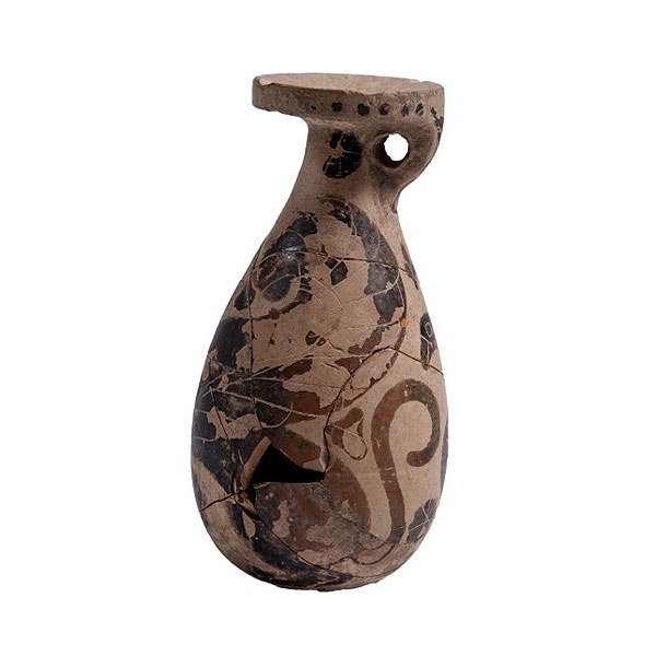 Ariballos griego de cerámica con decoración aves y Grifos orientalizantes, S.V - VI a.C