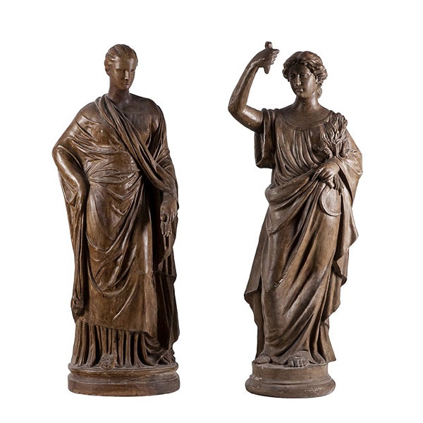 Pareja de figuras alegóricas de terracota patinada S.XIX