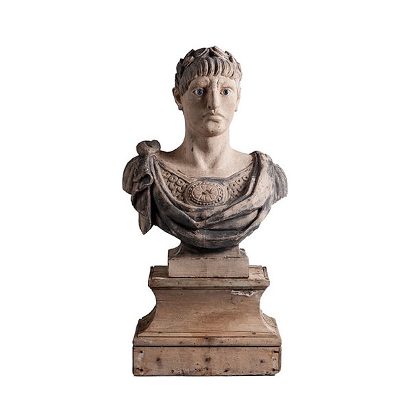 Busto de emperador italiano de madera tallada con ojos de vidrio S.XIX