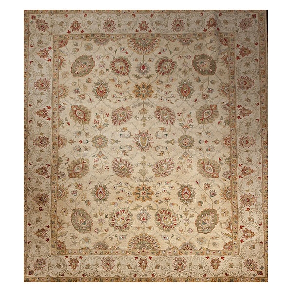 Alfombra Tabriz con campo color beige y decoración vegetal estilizada.